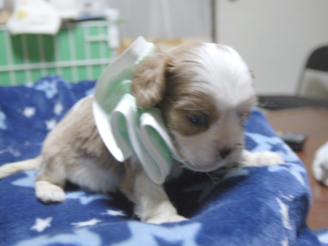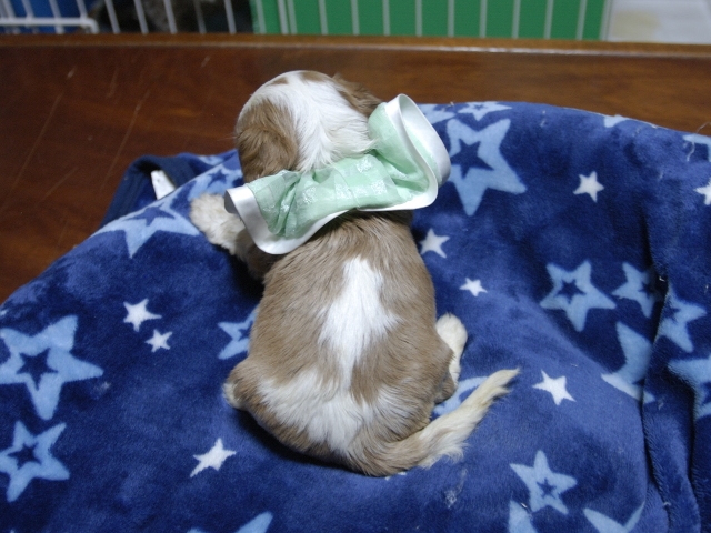 | コメント | お父さんはJKCチャンピオンの家斉君、お母さんはチャンピオン直子エンジェルちゃんからダンディな男の子です。(緑リボン君) 健康状態は、問題有りません。 すくすく育っています。 |