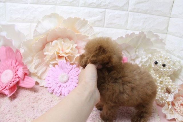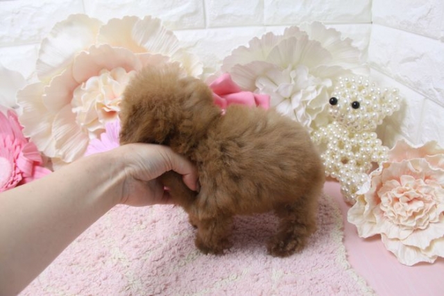 | コメント | 8月11日撮影 すっご~~~く可愛く成長中です^^ お目めまんまるで大きく、 お鼻もかなり短くて、 お顔まんまるな可愛いプードルです! 性格は人なつっこい明るいタイプです。 8月11日現在 生後92日で体重500gです。 成犬時予想体重は1.2~1.5kg前後の 超極小サイズTカップサイズ予想です。 父 1.3kg 母1.7kg 1回目のワクチンは接種済みです。 |