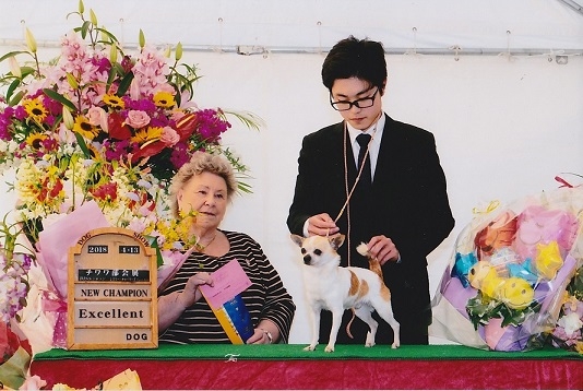 | コメント | 毛量がモコモコふわふわ豊かで、とてもゴージャス 典型的なドワーフタイプの綺麗な構成の子です 可愛い顔と血液はびっくりする程の超良血統です 性格はとてもフレンドリィーです 今後の成長が楽しみな子です 8/8(73日目)の体重 888g 母親:アメリカチャンピオン直子(父親は全米NO.1。ロスで開催されたナショナル展にてBISS受賞・・・<その展覧会に出陳した全ての犬種のNO.1> チワワ史上初めての快挙です) (その他沢山のアメリカ・カナダチャンピオンの血統が入ってます) お顔の可愛らしさ、身体の構成の良さ、性格の良さは流石です。 現在欠点はありません。 |