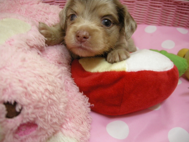 | コメント | お父さんチワワの『コロク』君!チョコクリームのイケメン君! しかもPRAクリアー!2.3㌔! お母さん『ショコラ』ちゃんダックスの女の子!チョコダップル!4㌔ 人気のチョコ&イザベラのチワックスです! 早いもの勝ち! 皆様からのお問い合わせ、ご見学お待ちしています! 大阪市 濱田! |