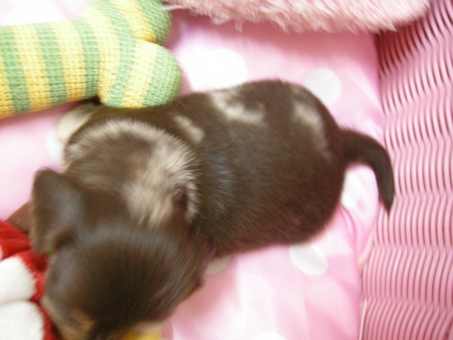 | コメント | お父さんチワワの『コロク』君!チョコクリームのイケメン君! しかもPRAクリアー!2.3㌔! お母さん『ショコラ』ちゃんダックスの女の子!チョコダップル!4㌔ 人気のチョコ&イザベラのチワックスです! 早いもの勝ち! 皆様からのお問い合わせ、ご見学お待ちしています! 大阪市 濱田! |