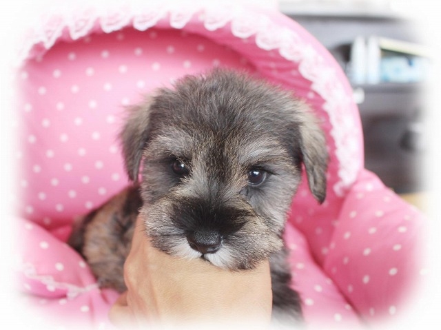 シュナウザーを主力にされているブリーダーさんだと認識しており、ボスちゃんはどうかなあと正直不安でしたがとても可愛く健康的なボスちゃんをいただきました。 掲載されていた写真より実物は想像以上に可愛くて即決し見学させていただいたその日に連れて帰りました。連絡をして、翌日行きますぅって勝手な申し出にも関わらず敏速かつ親切に対応して頂き大満足です。契約に対しても一つ一つ丁寧に説明してくださり、わかりやすかったです。この度は可愛いボスちゃんとのご縁をいただき、本当に有り難うございました。 (大阪府 女性)