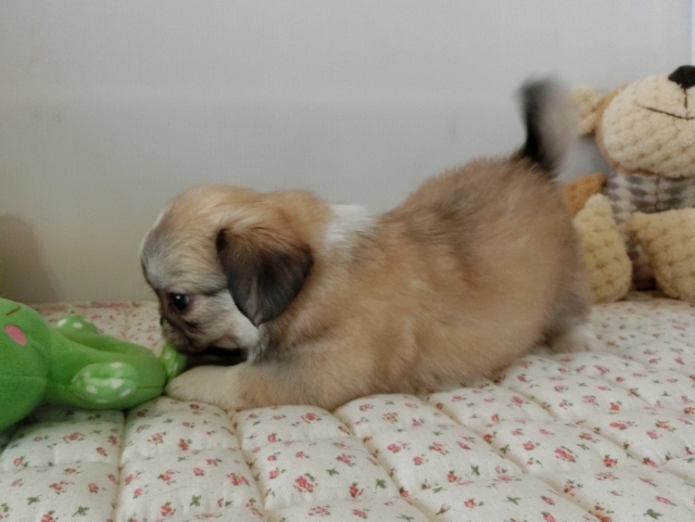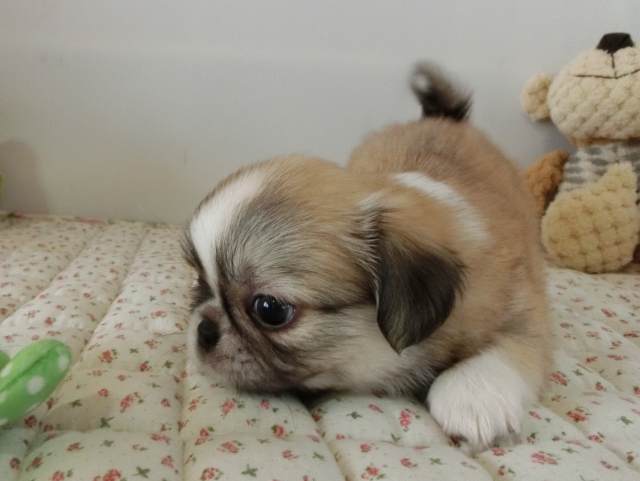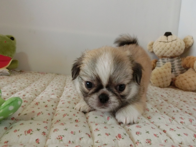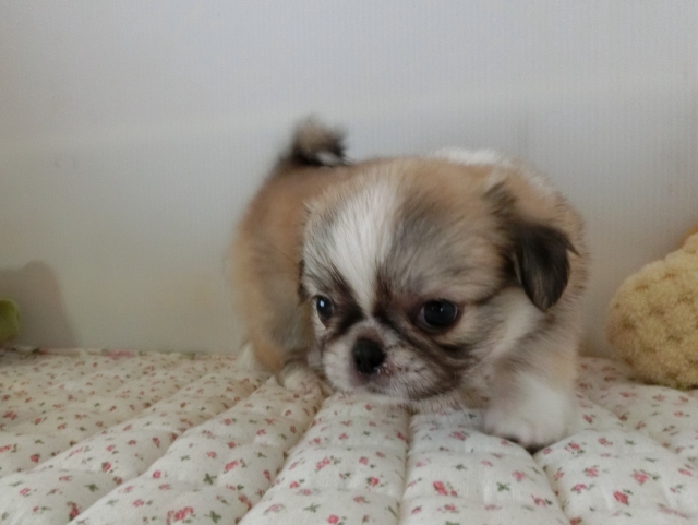 | コメント | ペキニーズのママとチワワのパパから生まれたハーフの子です。 短足でコロコロした子です♪ ちょこちょこ歩き回る姿に癒されます。 毎日ママや兄弟たちと楽しくじゃれ合いながら社会性を身に付けるお勉強をしています。 お迎えまでにはトイレトレーニングも頑張ります。 実物はお写真よりもずっと可愛いです! 是非ご見学にお越しください。 《お願い事》 まずは、子犬を飼う事をご家族で十分お話合いをされ、子犬をお迎えできる環境が整ってからのお問い合わせをお願いいたします。 お問い合わせ時に希望の子犬が決まっておらず、生まれている子犬全部を見たい等のご希望には添えかねます。 こまめな写真更新を心がけておりますが、 個別に新たな写真を希望される場合、子犬の向きや角度など細かなリクエストは撮影に時間がかかり子犬のストレスになりますのでご遠慮ください。 写真撮影は全くの素人ですのでどうぞご理解ください。 |