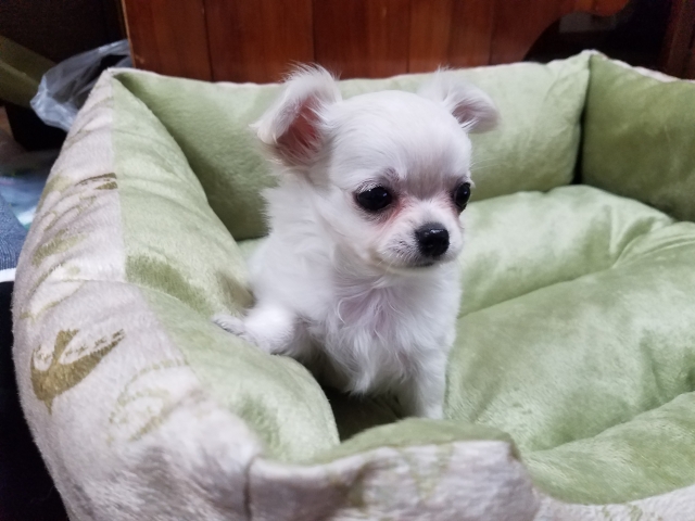 元々チワワを飼っている私の、両親も犬を飼いたいという事で、前川ブリーダーを見つけ、たまたま近くにいらっしゃるということもありすぐ見に行きましたが、チワワちゃん達はみんな可愛く、元々気になっていた子にすぐ決まりました。前川ブリーダーも、優しく色々教えてくださり、ワンちゃんたちを大切にされてる感じがしました。私も早くにもっとお会いできていたらと思いました!仔犬もすごくお利口さんです。またよろしくお願いします!!(岩手県 男性)