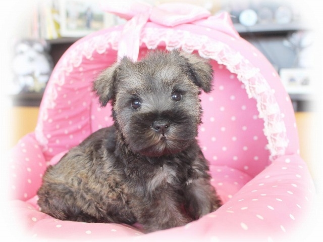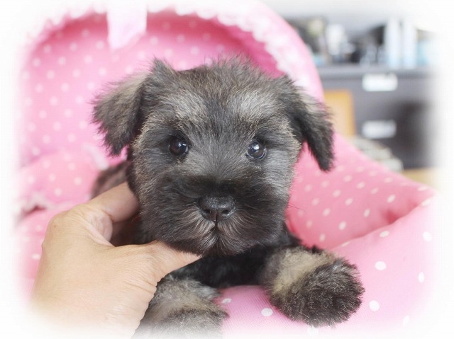 シュナウザーを主力にされているブリーダーさんだと認識しており、ボスちゃんはどうかなあと正直不安でしたがとても可愛く健康的なボスちゃんをいただきました。 掲載されていた写真より実物は想像以上に可愛くて即決し見学させていただいたその日に連れて帰りました。連絡をして、翌日行きますぅって勝手な申し出にも関わらず敏速かつ親切に対応して頂き大満足です。契約に対しても一つ一つ丁寧に説明してくださり、わかりやすかったです。この度は可愛いボスちゃんとのご縁をいただき、本当に有り難うございました。 (大阪府 女性)