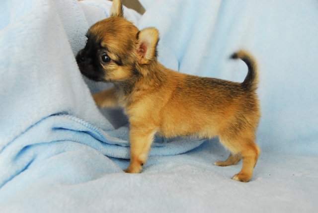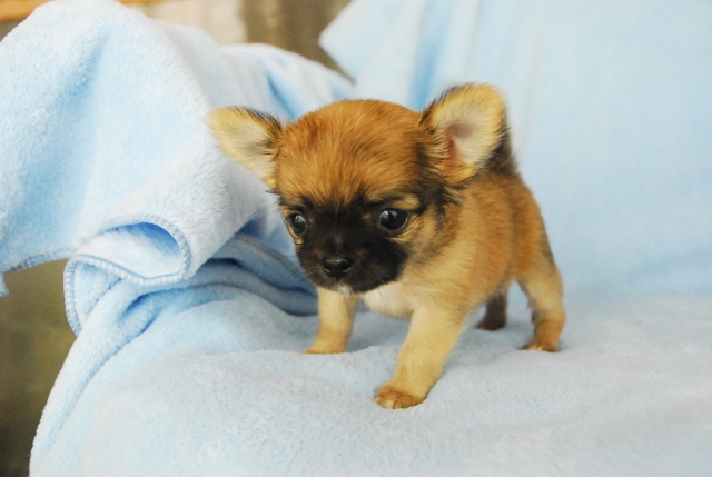 | コメント | 引き渡しは、2018年9月中旬以降の予定です。1回目のワクチン接種後となります。 2018年8月14日 体重は337g。歩き始めました。 口元の黒い被毛は、成長と共に薄くなる場合もありますが、個体差もありどこまで薄くなるか分かりません。 2018年8月25日 体重は、520g。 ドックフードを一日3回に与えています。 周りの物に興味を示し噛んだりしています。 |