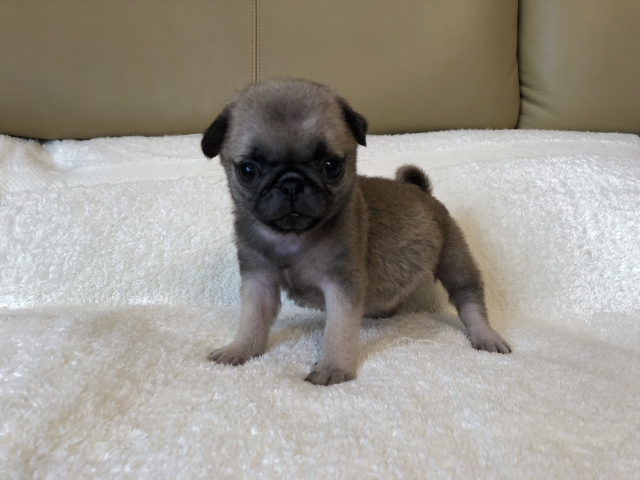 パグの飼育歴は30年以上になります。今年親の代から買っていた 黒パグを亡くしてから家を埋め尽くしているパググッズを見るたびに いつか新しい仔を迎えたいと思うようになりました。 北関東でブリーダーさんを探しているうちに木村様を知り、見学、購入の運びとなりました。 このたび性格も大変おおらかな素晴らしい仔犬をお譲りいただき大変感謝しております。 (茨城県 男性)