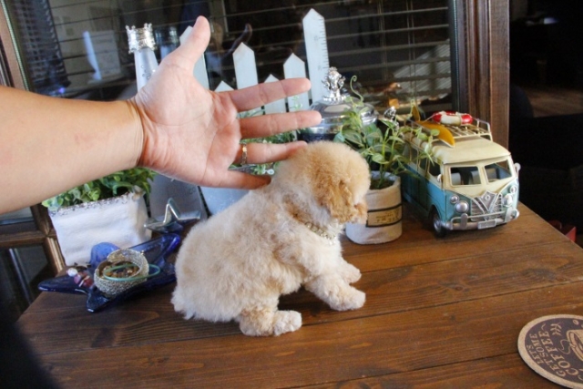 本日、我が家に小さな可愛い女の子のトイプードルがやって来ました。 遠距離という事もあり、暑い時期、飛行機の事なども心配していましだが、家に着いた途端、元気に走り、食欲も旺盛で、今まで大切に育てられてきたのだなぁ、ということがよくわかりました。 連休中にも関わらず、戸田様には、伊丹空港まで連れて来て頂き、こちらの質問にも的確に答えて下さいました。 大変信頼できるブリーダーです。 遠距離で悩まれている方も、安心して新しい家族を迎えられますよ。(兵庫県 男性)