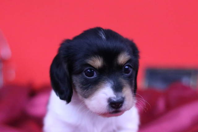 ミニチュア・ダックスフンド(ロング) ブラックタンパイボールド ♂(男の子) 愛知県【 ブリーダーズ 】