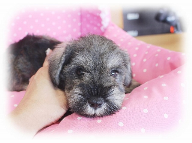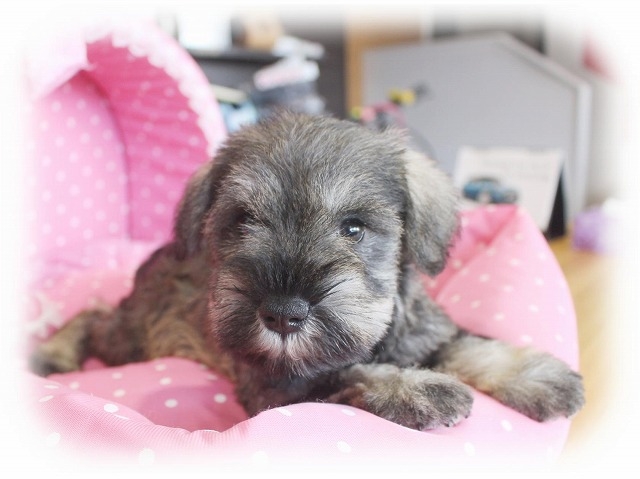 シュナウザーを主力にされているブリーダーさんだと認識しており、ボスちゃんはどうかなあと正直不安でしたがとても可愛く健康的なボスちゃんをいただきました。 掲載されていた写真より実物は想像以上に可愛くて即決し見学させていただいたその日に連れて帰りました。連絡をして、翌日行きますぅって勝手な申し出にも関わらず敏速かつ親切に対応して頂き大満足です。契約に対しても一つ一つ丁寧に説明してくださり、わかりやすかったです。この度は可愛いボスちゃんとのご縁をいただき、本当に有り難うございました。 (大阪府 女性)