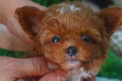 今回、村田ブリーダー様より可愛い子犬を譲っていただきました。引き渡しの時に丁寧に色々教えてもらいましたが、初めての子犬でわからない事だらけ。引き渡し当日の夕方にはもうSOSの電話をしてしまいました。同じ市内で信頼出来るブリーダー様に出会えて幸運でした。これからも宜しくお願いします。(京都府 女性)