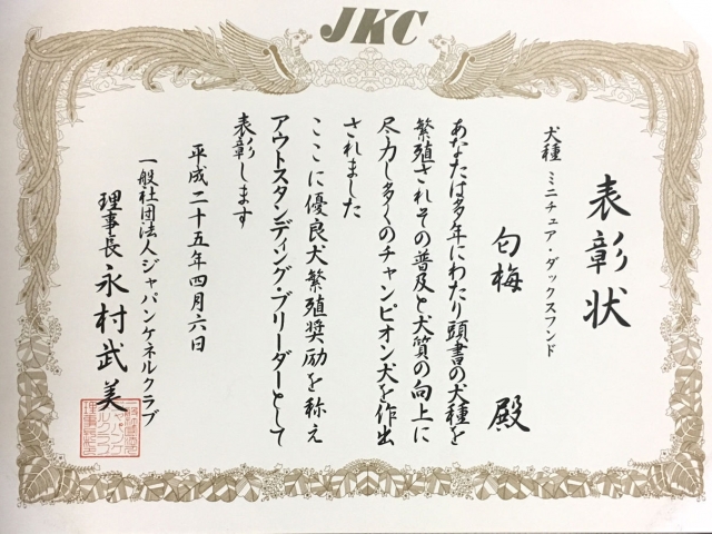色々とご無理を言っても親切に対応して頂きました。ドッグショーなどで忙しいなかでも、返事をくださり大変ありがたく思います。やっと仔犬が家族の一員なりとても嬉しく思います。ダックスを購入されたい方おすすめしたいです。(兵庫県 男性)