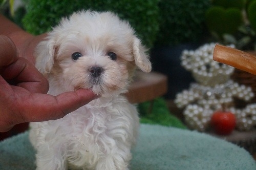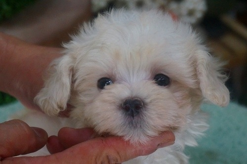 今回、村田ブリーダー様より可愛い子犬を譲っていただきました。引き渡しの時に丁寧に色々教えてもらいましたが、初めての子犬でわからない事だらけ。引き渡し当日の夕方にはもうSOSの電話をしてしまいました。同じ市内で信頼出来るブリーダー様に出会えて幸運でした。これからも宜しくお願いします。(京都府 女性)