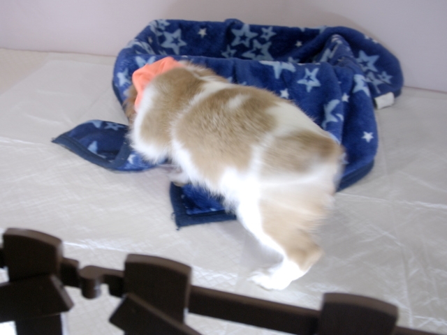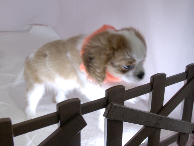 | コメント | お父さんはJKCチャンピオンの家重君、お母さんはチャンピオン直子キャサリンちゃんから生まれたダンディな男の子です。(橙リボン君) 健康状態は、問題有りません。 すくすく育っています。 |