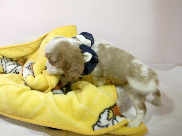 この度はとっても元気な子をありがとうございました。 見学の際は駅まで迎えにきていただき、説明もとても丁寧で安心しました。 空輸で送っていただき、ありがとうございました。 迎えてから一週間が経ち、家にも慣れて、へそ天で寝ています。 トイレトレーニングも、来た時から8割できていて、今ではほとんど失敗しなくなりました。 可愛く元気で、毎日元気に飛び跳ねています。(奈良県 女性)