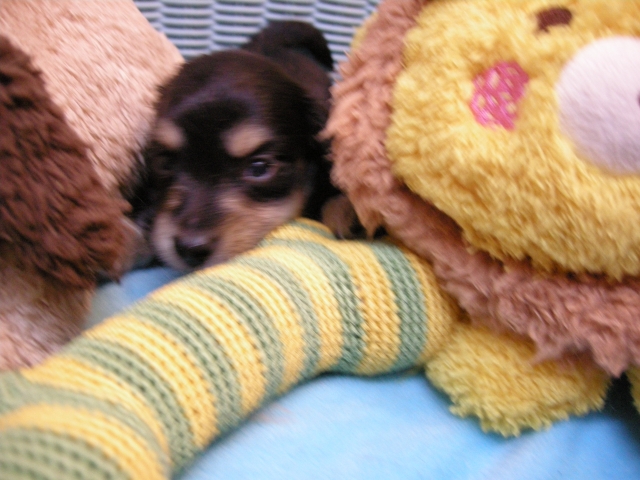 この度は可愛いカニンヘンダックスの女の子を譲っていただきありがとうございます。濱田さんのところからのお迎えは2頭目で、可愛さは初めの子でわかりすぎるほどわかっていたので絶対可愛くなること間違いなしで決めさせていただきました。 どんなことでも相談してくださいねと言う心強い言葉や、可愛い動画を送っていただいたりと本当によくしていただけました。 ワンちゃんは初日からアイコンタクトばっちり、よく食べ、よく寝て、元気いっぱいです。 家にきて1週間、先住犬と遊びながら元気に成長中です。 またよろしくお願いします。(大阪府 女性)