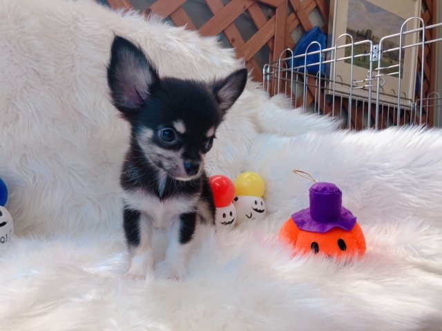 チワワ(ロング) ブラックタン&ホワイト ♂(男の子) 岡山県【 ブリーダーズ 】