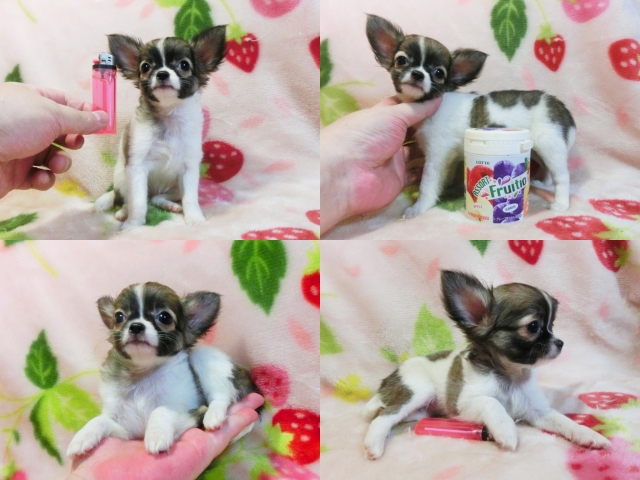 | コメント | 超!!極小サイズめちゃキュ-ト!! 絶対おすすめ愛らしい女の仔♪ 黒目勝ちのクリクリな瞳でめっちゃ短いお鼻に小っちゃい幼顔!! 被毛は首回りとお尻が長くなるタイプのホント綺麗なレッドです^^ 小さくてもとっても元気☆兄弟で仲良くやんちゃに遊んでます♪ 人や子供の手にも充分に慣れていてとっても懐っこい仔ですよ^^ 生後60日の体重は約580g!!成犬時予想体重は1.5kg位だと思います!! 身体のバランスが良くしっかりした硬い胴で骨量も多い丈夫な仔☆ 噛合せアンダー、その他関節形成など欠点の心配は一切ありません!! アンダーの為その分を考慮した価格になっております。ご了承下さい。 離乳も済み食欲旺盛でドライでカリカリ!!いつでもお引き渡しOK♪ 素敵なご家族様からのお問い合わせをお待ちしております^^ 【その他諸費用】 6種ワクチン接種費用:6千円【税・画像入証明書付・健康診断込】 ※お迎えの場合で【生体代金】+【ワクチン接種費用】のみです。 ●血統書登録団体:JKC(※3ヵ月以上要す事もあります) |