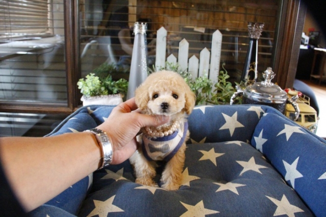 本日、我が家に小さな可愛い女の子のトイプードルがやって来ました。 遠距離という事もあり、暑い時期、飛行機の事なども心配していましだが、家に着いた途端、元気に走り、食欲も旺盛で、今まで大切に育てられてきたのだなぁ、ということがよくわかりました。 連休中にも関わらず、戸田様には、伊丹空港まで連れて来て頂き、こちらの質問にも的確に答えて下さいました。 大変信頼できるブリーダーです。 遠距離で悩まれている方も、安心して新しい家族を迎えられますよ。(兵庫県 男性)