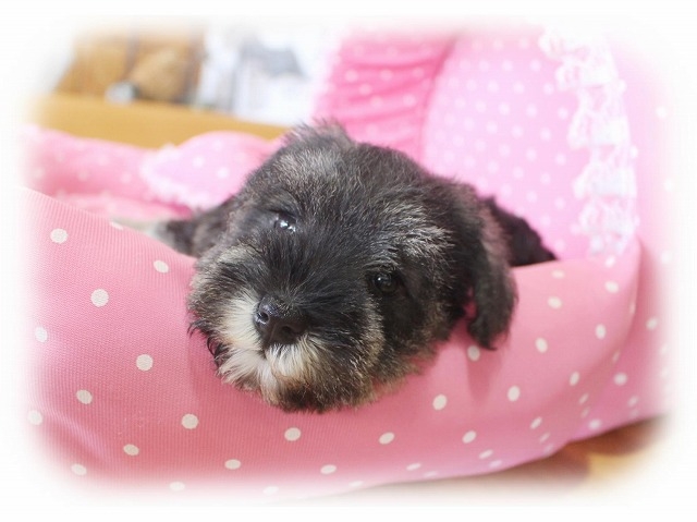 シュナウザーを主力にされているブリーダーさんだと認識しており、ボスちゃんはどうかなあと正直不安でしたがとても可愛く健康的なボスちゃんをいただきました。 掲載されていた写真より実物は想像以上に可愛くて即決し見学させていただいたその日に連れて帰りました。連絡をして、翌日行きますぅって勝手な申し出にも関わらず敏速かつ親切に対応して頂き大満足です。契約に対しても一つ一つ丁寧に説明してくださり、わかりやすかったです。この度は可愛いボスちゃんとのご縁をいただき、本当に有り難うございました。 (大阪府 女性)