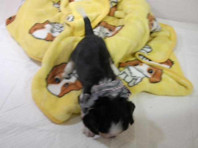 | コメント | お父さんはJKCチャンピオンの家重君、お母さんはチャンピオン直子インディちゃんから生まれたダンディな男の子です。(灰リボン君) 健康状態は、問題有りません。 すくすく育っています。 |