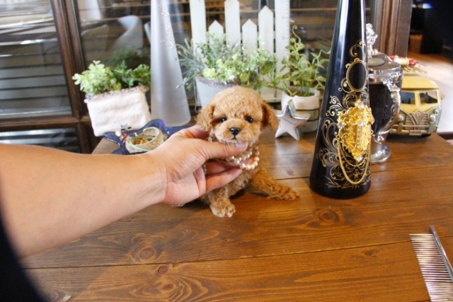 | コメント | 父1.5㎏ 母2.0㎏ 2頭生まれの兄妹でスタッフと大事に大事に育ててきました。 小さな体でお乳を吸う姿に愛しさがあります。 将来サイズティーサイズ【1キロから2,0キロ以内】予想 極上の毛質と毛量に覆われマズル(鼻先)は短く瞳は丸く小顔タイプのお顔 アプリコットは成長と共に綺麗な毛色に変化していき退色の心配のいらない 毛色でございます。 体型も足の短いドアーフタイプに胴の短いショートボディ 価格はお高目ではございますが 1頭を大事に飼いたいというお客様にお譲りできればと思っております。 生体ですので他の家族が先に決まってしまうことも 多々ありますのでご理解のほどよろしくお願いいたします 大人しく人懐っこい性格なので初めての方にも飼いやすい仔です☆ お留守番、夜鳴きはすでにしつけ済みです♪ ペットショップやオークション出しのブリーダーと違い欧米のブリーディング同様、親や兄弟と社会期を過ごさせることで 人間と暮らした時にスムーズに暮らせるようにしております。 親犬達も家族として朝7時からドックランで遊び、全室冷暖房完備の部屋で過ごし、専門のスタッフや専門学校の方々と協力し合いながら 衛生管理に努めております。 犬舎の特徴としましては、東京や神奈川近郊の為マンションのお客様が8割を占めます。その為小さな1キロから2.8キロまでに収まるように、 母犬を2.8キロまでと決めてブリーディングをしている為、後で極端に大きくなる子はいません。 瞳の丸く大きなところやマズル(鼻先)が短いもの特徴で、父犬、母犬、全て私が全国の可愛いトイプードルを一頭、一頭厳選して親犬としてブリーディングした子犬のみを掲載しております。 こだわりとしては、お客様がお迎えされた後、その子がTV出演、雑誌やカレンダーのモデルとして活躍の場が増え我が家を忘れないでいてもらいたい為、 本気でこだわりを持って常にトイプードルを飼うなら此処だと皆様全員に思われる犬舎でありたいと思います。 ありがたいことに今では、雑誌やTV出演、カレンダーなど多くの出身トイプードルちゃんたちが可愛く撮影されお客様からも喜びの声を頂いております |