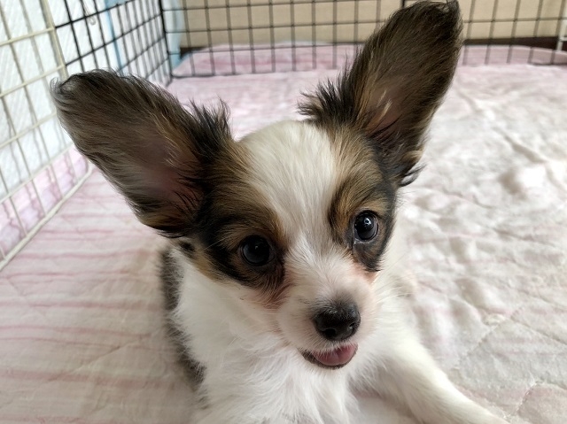 パピヨン ホワイト&セーブル ♂(男の子) 愛知県【 ブリーダーズ 】