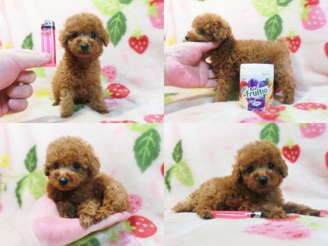 | コメント | ☆☆ティーカップサイズ予想☆☆ホント小っちゃくてビックリですよ!! クリクリのお目々に超短いお鼻チビチビめっちゃカワイイ女の子♪ 毛質最高!!しっかりした巻毛に毛量も充分で綺麗なレッドですよ^^ のんびりした優しい性格で初めて犬を飼う方でも飼い易い仔です☆ 小さくてもとっても元気テーカップ兄弟たちと仲良く遊んでます♪ 生後60日の体重は約580g成犬予想体重2kg未満だと思います!! 無理に小さく育てたTカップとは違って本当に元気な健康優良児♪ 身体のバランスが良くしっかりした硬い胴で骨量も多い丈夫な仔☆ 現状噛合せや骨格・関節形成など欠点の心配は一切ありません!! 離乳も済み食欲旺盛でドライでカリカリ!!いつでもお引き渡しOK♪ 素敵なご家族様からのお問い合わせ、お迎えをお待ちしております^^ 【その他諸費用】 5種ワクチン接種費用:6千円【税・画像入証明書付・健康診断込】 ※お迎えの場合で【生体代金】+【ワクチン接種費用】のみです。 ●血統書登録団体:JKC(到着次第郵送※3ヵ月以上要する事もあります) |