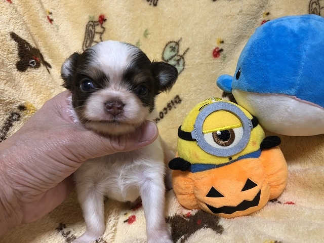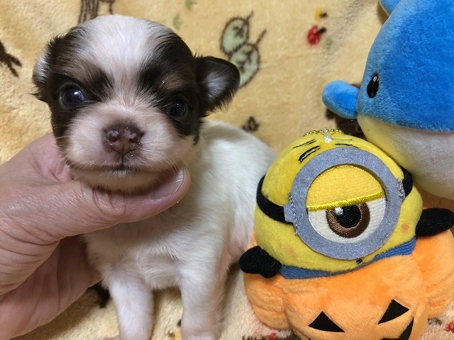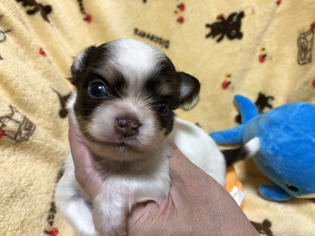 チワワ(ロング) ホワイト&チョコレートタン(パーティ) ♂(男の子) 和歌山県【 ブリーダーズ 】