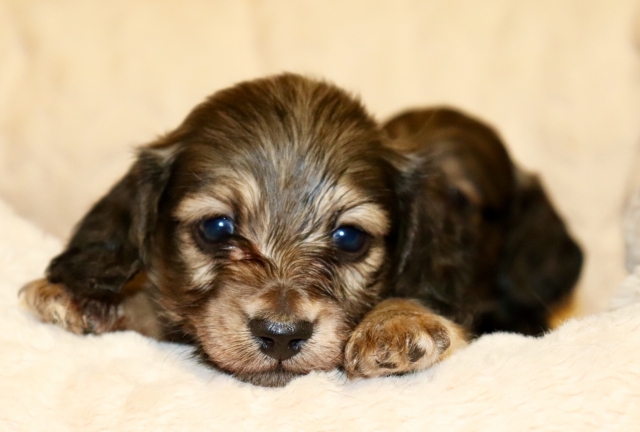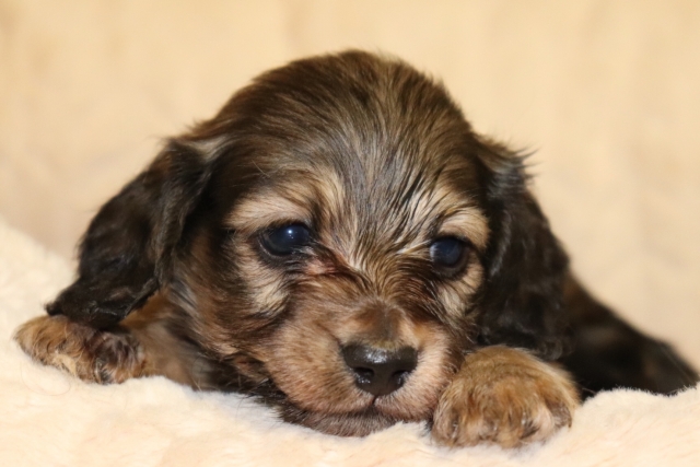 ミニチュア・ダックスフンド(ロング) シェーデットイエロー ♂(男の子) 広島県【 ブリーダーズ 】