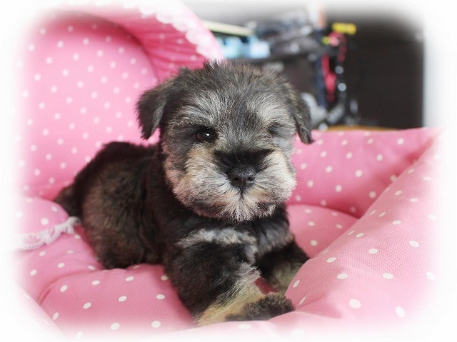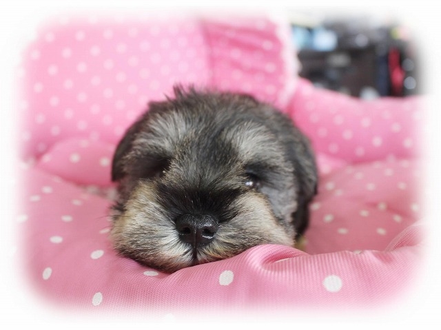 シュナウザーを主力にされているブリーダーさんだと認識しており、ボスちゃんはどうかなあと正直不安でしたがとても可愛く健康的なボスちゃんをいただきました。 掲載されていた写真より実物は想像以上に可愛くて即決し見学させていただいたその日に連れて帰りました。連絡をして、翌日行きますぅって勝手な申し出にも関わらず敏速かつ親切に対応して頂き大満足です。契約に対しても一つ一つ丁寧に説明してくださり、わかりやすかったです。この度は可愛いボスちゃんとのご縁をいただき、本当に有り難うございました。 (大阪府 女性)