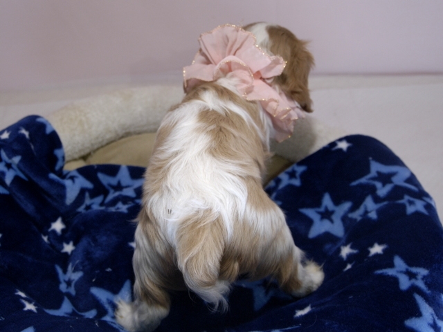 | コメント | お父さんはJKCチャンピオンの家斉君、お母さんはチャンピオン直子シャーロットちゃんから生まれたキュートな女の子です。(桃リボンちゃん) 健康状態は、問題有りません。 すくすく育っています。 |