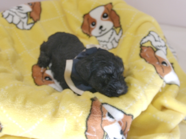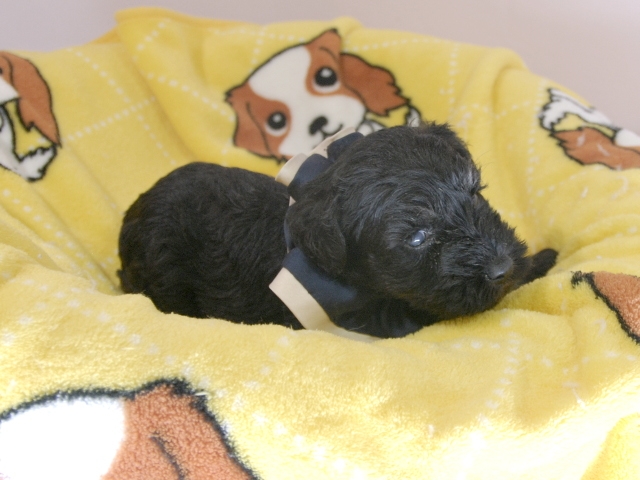 | コメント | お父さんJKCチャンピオンのジャスティン君(木村敏美さん所有)、お母さんカーリーちゃんから生まれたダンディな男の子です。(紺リボン君) |