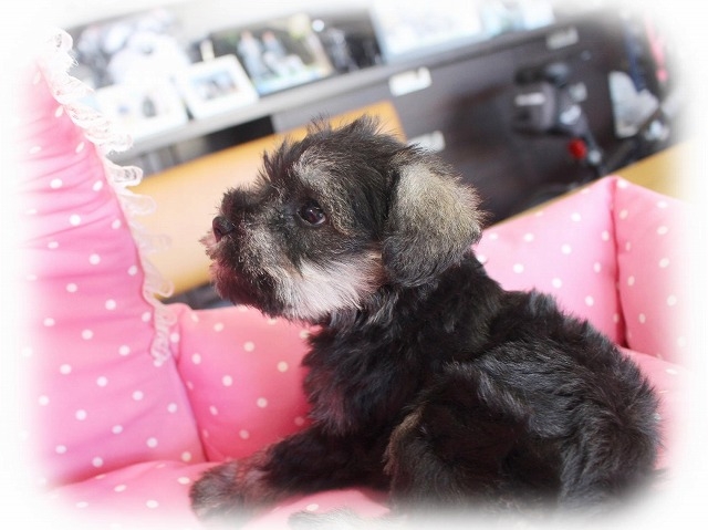 シュナウザーを主力にされているブリーダーさんだと認識しており、ボスちゃんはどうかなあと正直不安でしたがとても可愛く健康的なボスちゃんをいただきました。 掲載されていた写真より実物は想像以上に可愛くて即決し見学させていただいたその日に連れて帰りました。連絡をして、翌日行きますぅって勝手な申し出にも関わらず敏速かつ親切に対応して頂き大満足です。契約に対しても一つ一つ丁寧に説明してくださり、わかりやすかったです。この度は可愛いボスちゃんとのご縁をいただき、本当に有り難うございました。 (大阪府 女性)