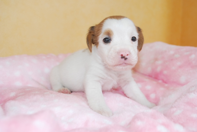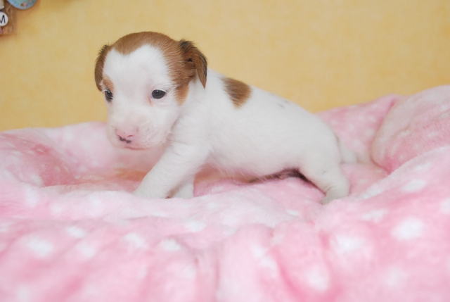 | コメント | 愛嬌たっぷりのジャックラッセル・テリア。 元気で賢い犬種です。 毛質はまだわかりません。 10月13日現在の体重は500gです。 お引渡しは11月初旬になりますが、ご見学の上ご予約は大丈夫です。 ワクチン1回分(5,000円)は別途お願い致します。 |