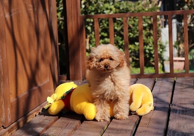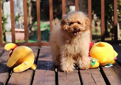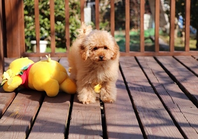 とっても可愛いトイプートルの女の子を譲って頂きました。モコと名前を付けて家族皆で可愛がってます。トイレはしつけ途中とおっしゃっていましたが、ちゃんとトイレまでトコトコ歩いていってした時はビックリしてキチンとしつけをしてくださっていたんだなぁと感激しちゃいました。性格も明るく元気で、先に飼っていたトイプーのお兄ちゃんとも仲良くやれそうです。モコの方が元気で時々お兄ちゃんは逃げ腰になってますけど。(^^;; 本当にこの度はありがとうございました。大切に育てますね。(鹿児島県 女性)