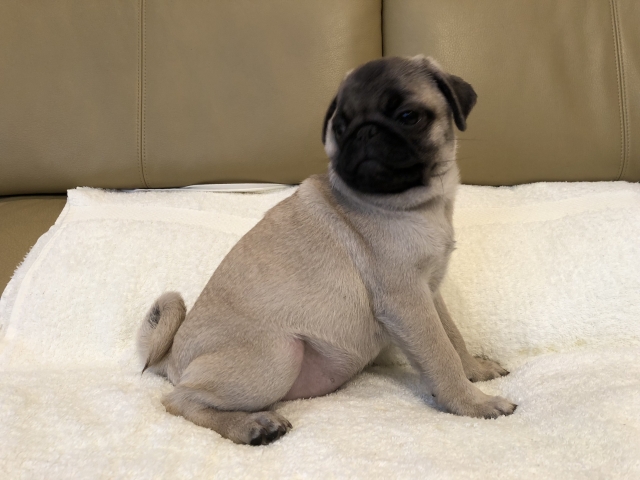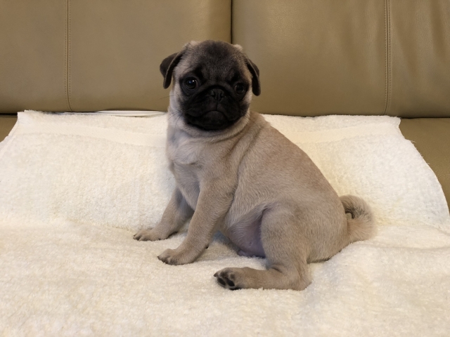 パグの飼育歴は30年以上になります。今年親の代から買っていた 黒パグを亡くしてから家を埋め尽くしているパググッズを見るたびに いつか新しい仔を迎えたいと思うようになりました。 北関東でブリーダーさんを探しているうちに木村様を知り、見学、購入の運びとなりました。 このたび性格も大変おおらかな素晴らしい仔犬をお譲りいただき大変感謝しております。 (茨城県 男性)