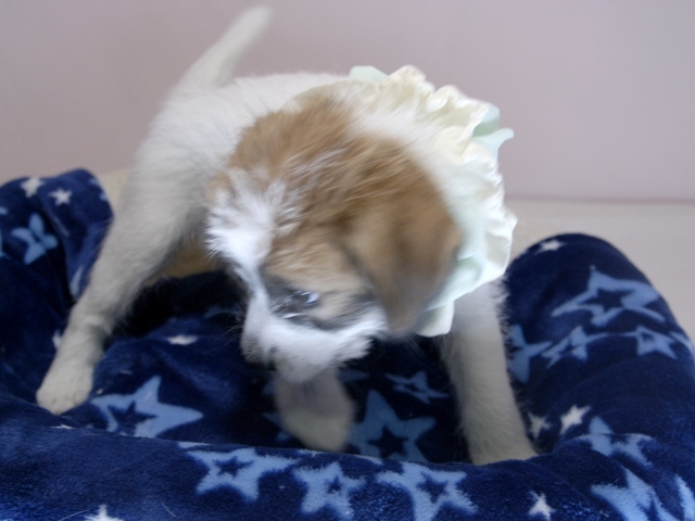 この度はとっても元気な子をありがとうございました。 見学の際は駅まで迎えにきていただき、説明もとても丁寧で安心しました。 空輸で送っていただき、ありがとうございました。 迎えてから一週間が経ち、家にも慣れて、へそ天で寝ています。 トイレトレーニングも、来た時から8割できていて、今ではほとんど失敗しなくなりました。 可愛く元気で、毎日元気に飛び跳ねています。(奈良県 女性)