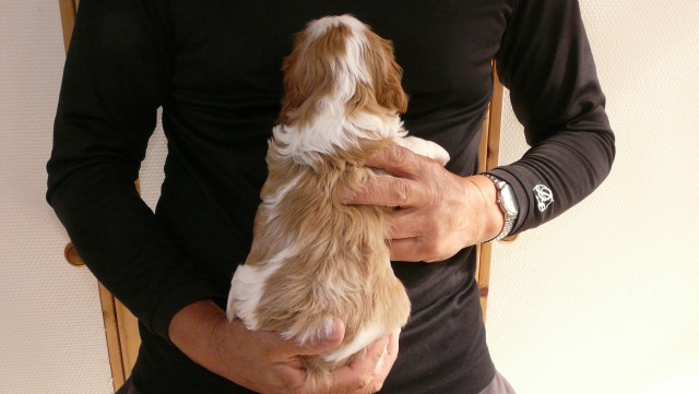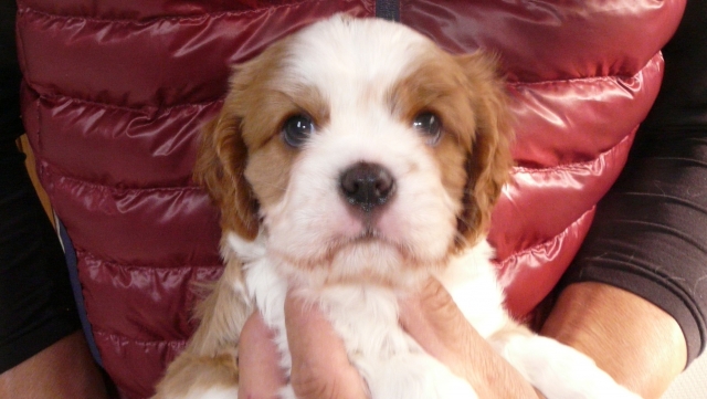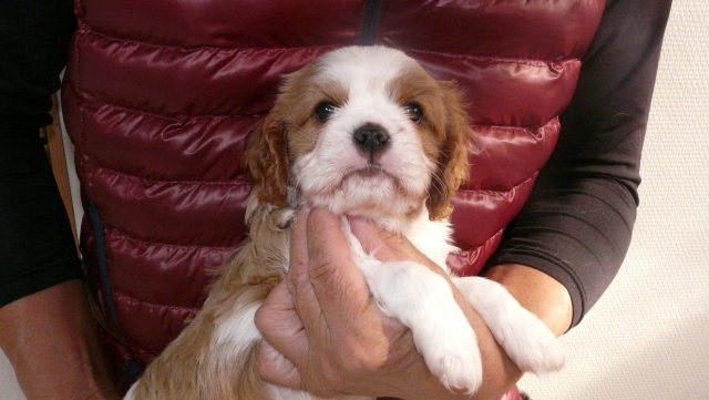 | コメント | 当犬舎はキャバリア専門です。 母親、ブレンハイム。 父親、ブレンハイム、チャンピオン直子。 家庭内で家族同様に暮らしております。 母乳をよく飲み離乳食もよく食べ、元気なしっかりした子でよちよち歩き始めております。 噛み合わせ、ソケイヘルニア等問題ありません。 1回目のワクチン接種および健康診断の後のお引き渡しを予定しております。 カラーも毛並みも綺麗な子です。 可愛い子ですよ。 お気軽にお問い合わせくださいませ。 |