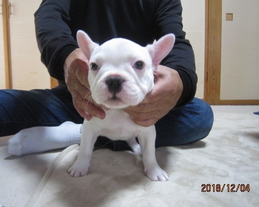 掲載されていた仔犬が可愛らしく見学を希望、西村さんよりすぐご連絡頂きました。見学に行った時には仔犬だけじゃぁ無く親犬や他の仔犬など沢山のフレンチにふれ合い、とても気さくな西村さんとお話ししていて幸せなひと時でした。帰りは近くの高速の入り口まで案内して頂きました。我が家に迎え入れて数日経ちますが元気で愛くるしくってたまらないです。(大阪府 女性)