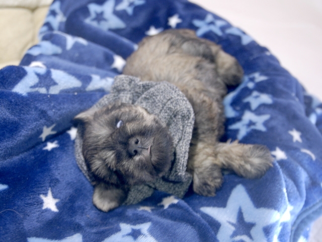 | コメント | お父さんJKCチャンピオンのゼロ君(木村敏美さん所有)、お母さんブロンちゃんから生まれたキュートな女の子です。(濃灰リボンちゃん) |