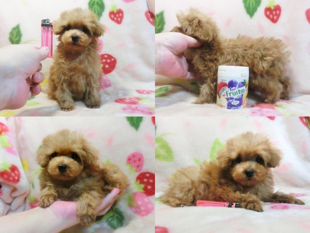 | コメント | ☆☆小さめティーカップ予想☆☆ホント小っちゃくてビックリですよ!! クリクリのお目々に超短いお鼻チビチビめっちゃカワイイ女の子♪ のんびりとした優しい性格で初めての方にでも飼い易い仔です☆ 毛質毛量とも充分で巻毛も良好少し薄めでも綺麗なレッドですよ^^ 小さくてもとっても元気テーカップ兄弟たちと仲良く遊んでます♪ 生後約90日の体重は約800g成犬予想体重1.8kg未満だと思います!! 身体のバランスが良くしっかりした硬い胴で骨量多い丈夫な仔☆ 現状噛合せや骨格・関節形成など欠点の心配はありません!! 離乳も済み食欲旺盛でドライでカリカリ!!いつでもお引き渡しOK♪ 素敵なご家族様からのお問い合わせをお待ちしております^^ 【その他諸費用】 5種ワクチン接種費用:6千円【税・画像入証明書付・健康診断込】 ※お迎えの場合で【生体代金】+【ワクチン接種費用】のみです。 ●血統書登録団体:JKC(到着次第郵送※3ヵ月以上要する事もあります) |