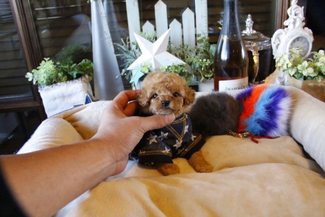 | コメント | 父1.5㎏ 母2.6㎏ 性格の大人しい男の子のご紹介です☆ 良くお客様から男の子と女の子の違いを聞かれますが 足を上げる前に去勢してしまうと大きな差は実はないのです 1番のトイレですが足をあげる前に去勢するとトイレは女の子同様 お座り体制でします。(*´ω`*) 性格は男の子はとても従順でお迎えは100% 主人のトイレ待ち100% 主人のお風呂待ち脱衣場で待つ100% のうらぎりのない忠実さを兼ね備えております。 女の子は人間同様気まぐれ感を備えておりますのでまたそれも 愛くるしいです 私たちブリーダーは女の子は残してもいい子を販売している為 男の子より少し高めになっていますので1頭だけを可愛がりたいお客様 は可愛い男の子を選ばれるといいと思いますよ 将来タイニーサイズ前半サイズ予想 生体ですので他の家族が先に決まってしまうことも 多々ありますのでご理解のほどよろしくお願いいたします お留守番、夜鳴きはすでにしつけ済みです♪ 欧米のブリーディング同様、親や兄弟と社会期を過ごさせることで 人間と暮らした時にスムーズに暮らせるようにしております。 親犬達も家族として朝7時からドックランで遊び、全室冷暖房完備の部屋で過ごし、専門のスタッフや専門学校の方々と協力し合いながら 衛生管理に努めております。 犬舎の特徴としましては、東京や神奈川近郊の為マンションのお客様が8割を占めます。その為小さな1キロから2.8キロまでに収まるように、 母犬を2.8キロまでと決めてブリーディングをしている為、後で極端に大きくなる子はいません。 瞳の丸く大きなところやマズル(鼻先)が短いもの特徴で、父犬、母犬、全て私が全国の可愛いトイプードルを一頭、一頭厳選して親犬としてブリーディングした子犬のみを掲載しております。 こだわりとしては、お客様がお迎えされた後、その子がTV出演、雑誌やカレンダーのモデルとして活躍の場が増え我が家を忘れないでいてもらいたい為、 本気でこだわりを持って常にトイプードルを飼うなら此処だと皆様全員に思われる犬舎でありたいと思います。 ありがたいことに今では、雑誌やTV出演、カレンダーなど多くの出身トイプードルちゃんたちが可愛く撮影されお客様からも喜びの声を頂いております |