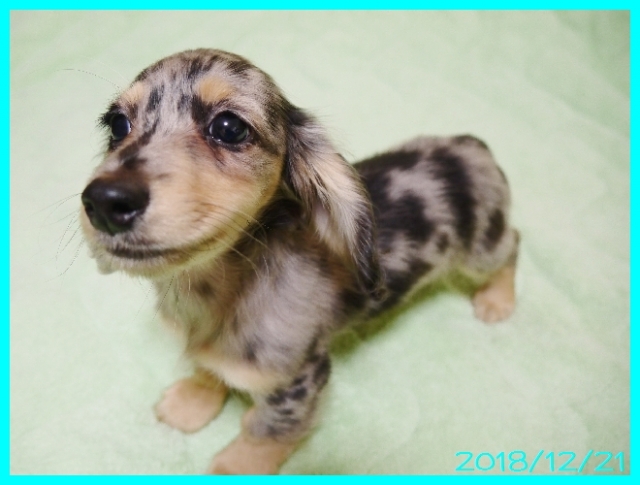 | コメント | パパは現在ドッグショーチャレンジ中でCCカード2枚所有 JKCチャンピオン直子の茶美太【ちゃみた】君(シルバーダップル) ママはJKCチャンピオン直娘の空星【クララ】ちゃん(チョコレート&イエロー) 両親共に素晴らしい血統で、両祖父母も全員がチャンピオンです。 子犬ちゃんは欠点なども無く、色素のしっかりとしたとてもかわいらしい子で、PRA(遺伝性の網膜委縮症)の検査もしておりますので、発症する心配はありません。 安心してお飼いいただけます。 お顔がかわいらしくて性格の愛らしい、血統と犬質の良い健康で健全なダックスの繁殖を心がけておりますので、ぜひお問い合わせをお待ちしております。 生後1か月で3種混合ワクチン(当方負担にて実施) その後生後50日に6種混合ワクチンと健康診断を実施してからのお引き渡しとなります。 素敵なご縁がありますように・・・・ |