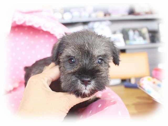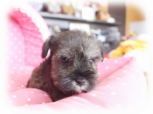 シュナウザーを主力にされているブリーダーさんだと認識しており、ボスちゃんはどうかなあと正直不安でしたがとても可愛く健康的なボスちゃんをいただきました。 掲載されていた写真より実物は想像以上に可愛くて即決し見学させていただいたその日に連れて帰りました。連絡をして、翌日行きますぅって勝手な申し出にも関わらず敏速かつ親切に対応して頂き大満足です。契約に対しても一つ一つ丁寧に説明してくださり、わかりやすかったです。この度は可愛いボスちゃんとのご縁をいただき、本当に有り難うございました。 (大阪府 女性)