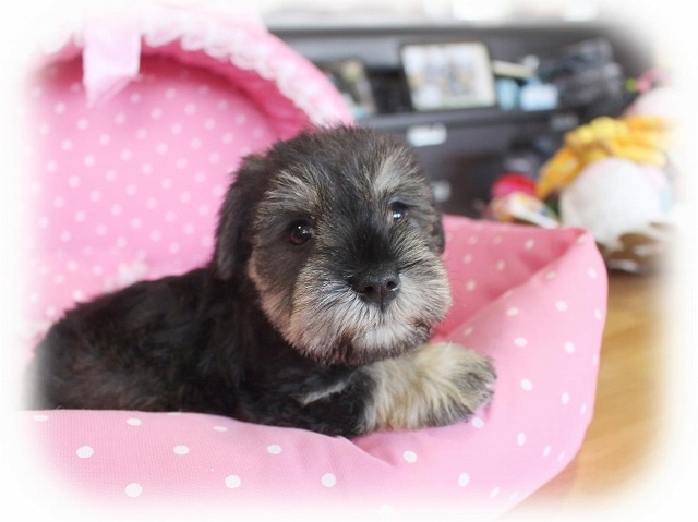 シュナウザーを主力にされているブリーダーさんだと認識しており、ボスちゃんはどうかなあと正直不安でしたがとても可愛く健康的なボスちゃんをいただきました。 掲載されていた写真より実物は想像以上に可愛くて即決し見学させていただいたその日に連れて帰りました。連絡をして、翌日行きますぅって勝手な申し出にも関わらず敏速かつ親切に対応して頂き大満足です。契約に対しても一つ一つ丁寧に説明してくださり、わかりやすかったです。この度は可愛いボスちゃんとのご縁をいただき、本当に有り難うございました。 (大阪府 女性)