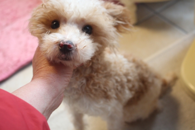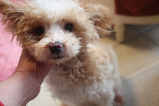 | コメント | とても大人しく元気な子です。 欠点はありませんが、まだ鼻の1分が薄い所あります。 段々鼻の薄いのが気にならなくなりました。 12月6日現在2.1kgほぼ体重は確定しています。 12月6日の画像に入れ替えました。 毛は綺麗に巻いています。 毛の手入れ不足で、短く刈ってもらいました。 これから短い毛も、すぐふさふさに、なってきます。 |