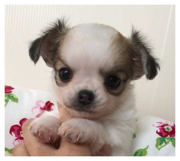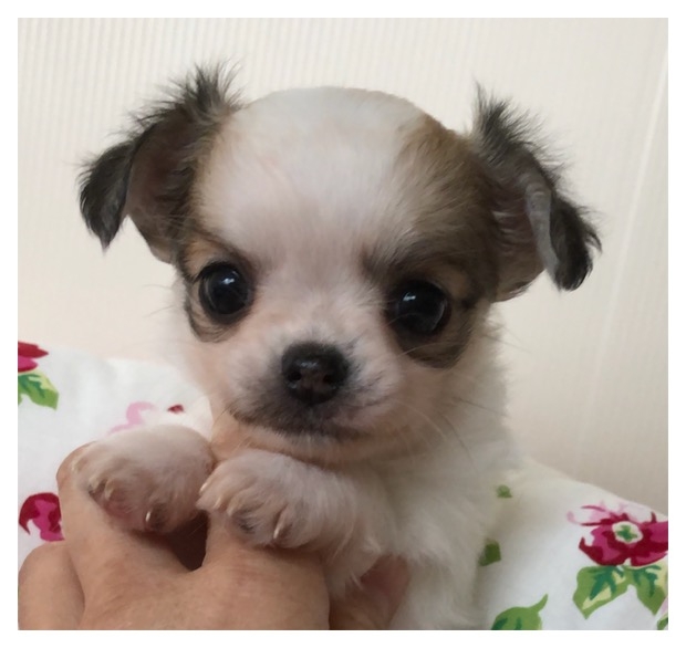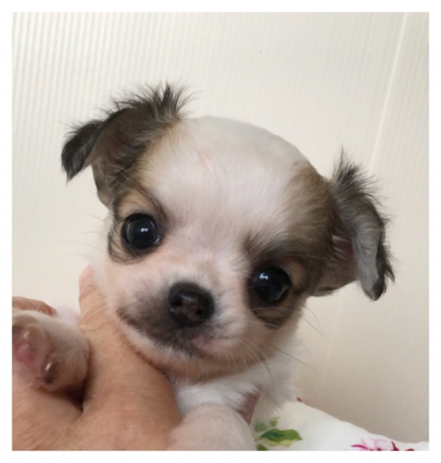| コメント | とっても可愛い超オススメの女の子が産まれました〜♪♪♪ 真ん丸などんぐりお目々がチャームポイントで、イケメンのパパにそっくりなとっても可愛らしい子です。 パパのベビーの時にそっくり。 可愛いのはお顔だけではありません。 性格もとっても可愛くて、まったりゴロゴロ癒し系 笑 そして尻尾フリフリ人懐こいです。 体を撫でられるのが大好きで、背中を撫でてあげていたらお腹も触って〜とゴロゴロし始めるとっても従順な子です。 兄弟達が極小な為この子がいちばん体が大きいのですが、遊んでいても自分からお腹を出して決して小さい子を鳴かせたりしない優しい子です。 Instagramやブログにはお遊びの様子などをたくさん動画に撮って掲載中です。 こちらに動画を貼り付けられるのですが、パソコンに疎い為掲載出来ず申し訳ありません。 サイズは成犬時2〜2.3kgぐらいになる予想です。 胴も短く骨が太く、骨格構成も良い感じです。 ですので、大人になった時に同じ体重の子よりも一回り小さく見えると思います。 食欲も旺盛でしっかりとたべてくれる子ですので、ご飯を食べないと悩む事もないかと思います。 毛色は現在模様部分に黒い差し毛がありますので濃く見えますが、せいけんじには白地に淡いベージュの毛色に変わります。 ホワイト&クリームのような雰囲気になり、とっても柔らかなふんわりしたカラーです。 性格も大変素直で良い子ですので、躾も入りやすいです。 初めて飼育される方にも飼いやすいタイプの子と思います。 ご見学大歓迎です。 是非実物をご覧くださいませ。 ワクチン接種と健康診断も完了しております。 健康状態も良好でしたので、ご見学と同時にお迎えも可能です。 我が家は遠方からのご見学が多くゆっくりとご覧いただきたい為、1日一件しか承っておりません。 週末をご希望の方はお早めにご予約ください。 家族の一員として生涯大切に飼育してくださる方とご縁がありますと嬉しいです。 |