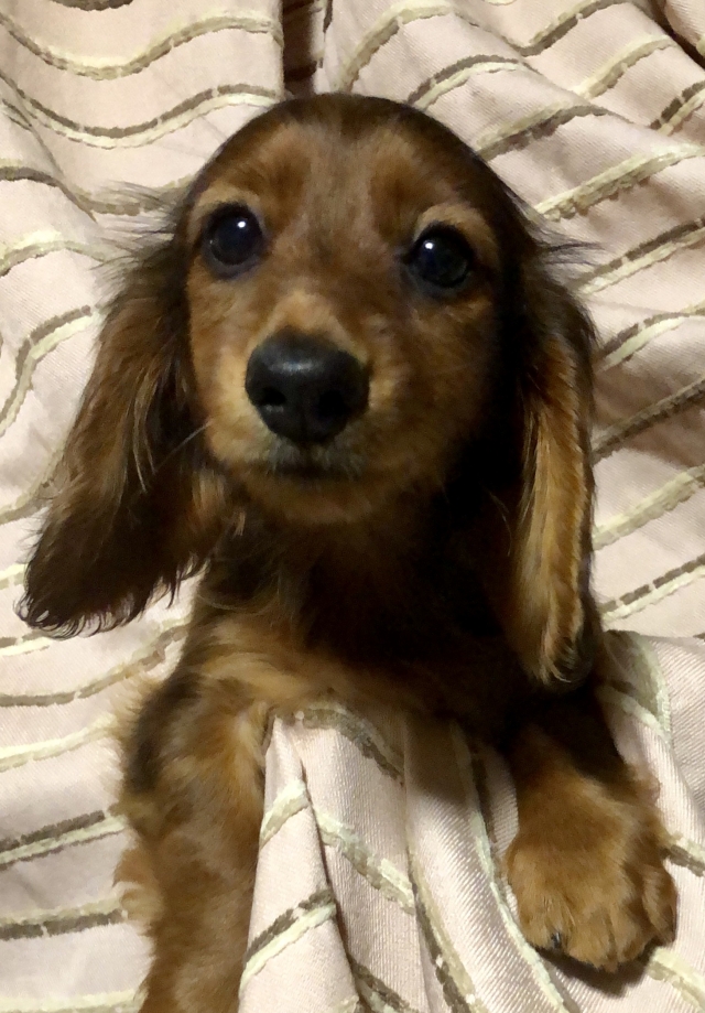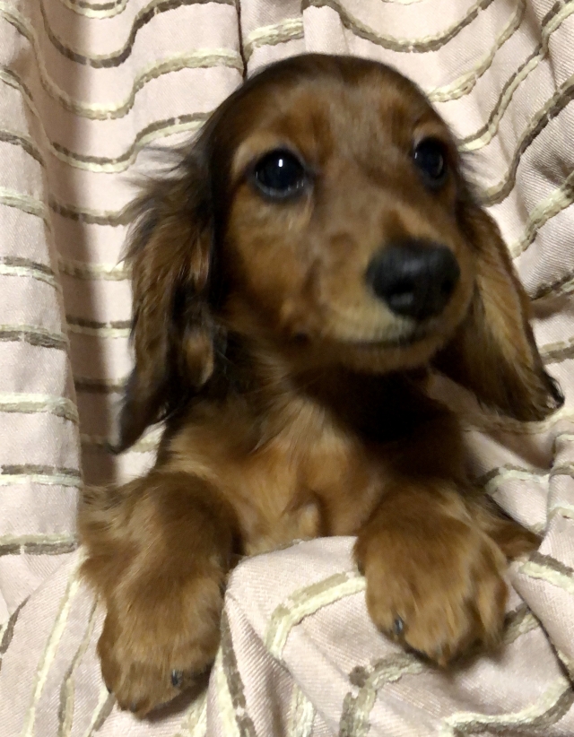 現在カニヘンダックスを飼っており、この度2頭目が欲しいと思っていたところ、細田様の子犬が目に留まりました。以前よりドイツダックスに興味があり、実際お宅に伺って直接子犬また両親犬を見ることができその毛色の素晴らしさに感動しました。またお話しを伺い犬に対する強い思い、深い愛情を持って育てられている事が感じられましたので、その場で即決譲渡させて頂くことになりました。 また、『もし何かありましたら24時間いつでも御連絡下さい』と… 子犬は健康的で元気一杯、人懐っこい性格でした。 ドイツダックスに興味のある方 おすすめのブリーダーさんです!(静岡県 男性)