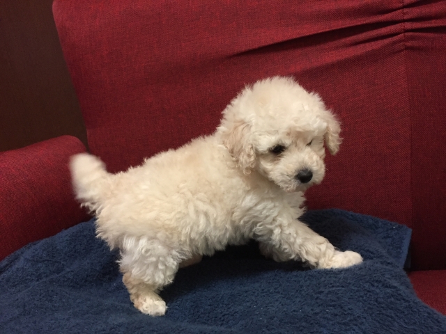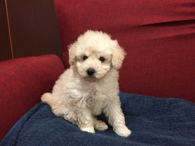 | コメント | 11月14日現在980g 2018年10月3日生まれ ホワイト 男の子 パパ ホワイト2.8kg ママ シルバー4.3kg (JKCチャンピオン直子 スマッシュ系) 成犬時には3〜4kgトイサイズ予想です 今現在、欠点は見あたりません よく遊ぶ、元気な可愛いモコモコな男の子です。 実物の方が可愛いので、ぜひ見学にいらして 下さい。ご見学には予約が必要となります。 11月21日以降、お引き渡し可能です。 |
